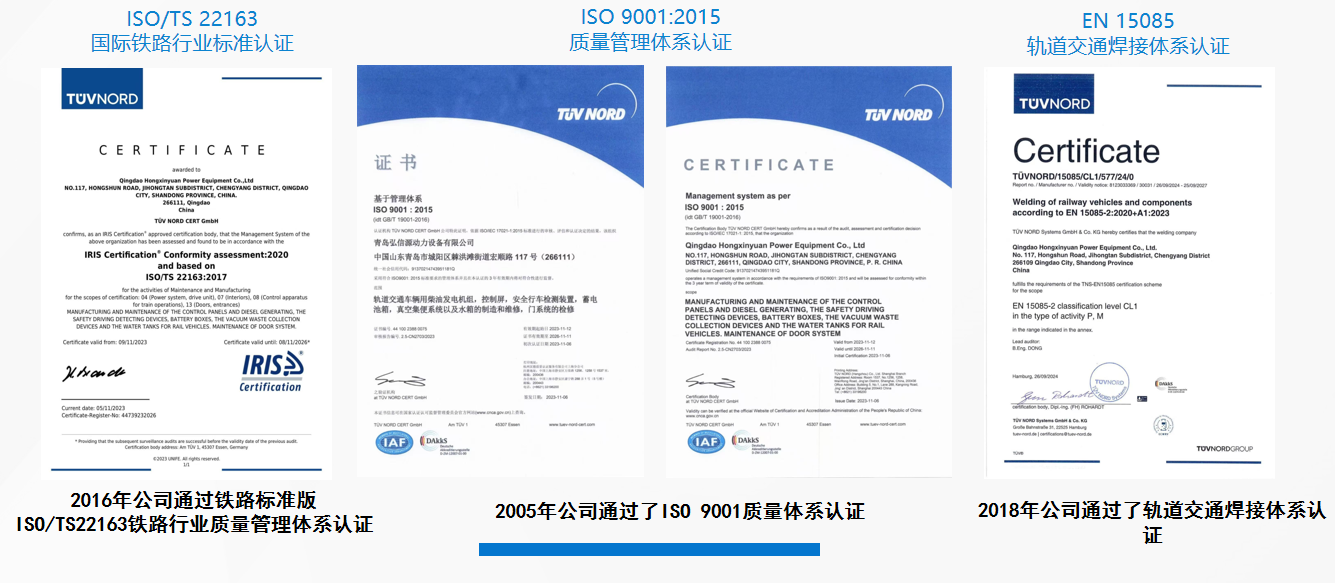 青岛弘信源动力设备有限公司始建于2002年11月,是从事发电机组生产、轨道车辆发电车发电机组大修及客车配套设施、集便器、动车组检修专业型企业。